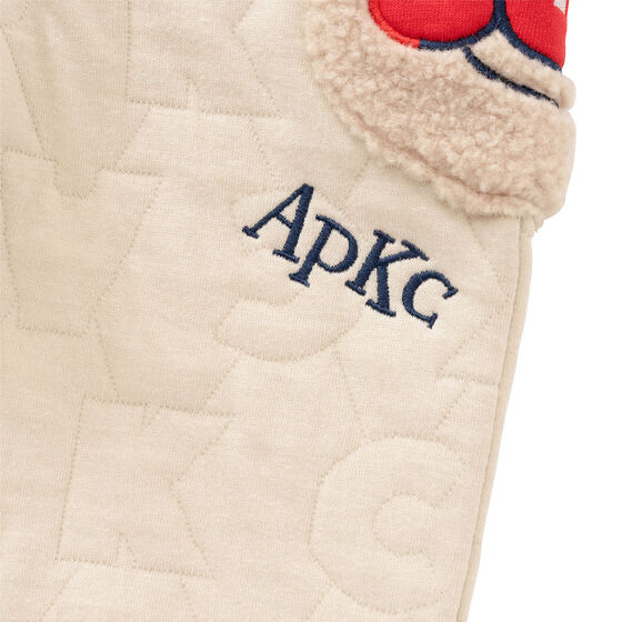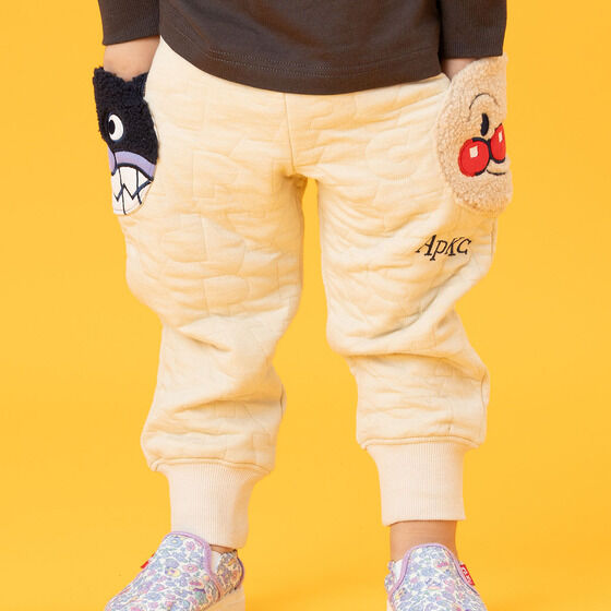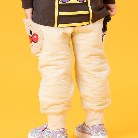 ボアのお顔ポケットが可愛いスウェットパンツ! ベージュはアンパンマンとばいきんまん、ネイビーはアンパンマンとだだんだんのお顔がもこもこのボア素材でアップリケポケットになっています。 APKC柄のキルト生地を使用した豪華で凝ったパンツです。 <カラー> ベージュ、ネイビー <素材> 本体(表面・裏面):綿100% 中わた:ポリエステル100% リブ部分:綿95%、ポリウレタン5% ポケット部分:ポリエステル100% ポケット部分別布:綿100% <サイズ>(約) 80cm :股上18.5cm 股下27cm ウエスト42cm 90cm :股上19cm 股下29cm ウエスト44cm 100cm:股上19.5cm 股下33cm ウエスト46cm 110cm:股上20cm 股下38cm ウエスト48cm 120cm:股上20.5cm 股下43cm ウエスト50cm ※股上…ベルト含む ※ウエスト…ウエストゴム上がり×2 <生産エリア> 中国 <品番> 2813347 |