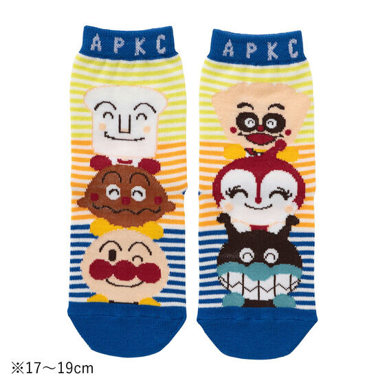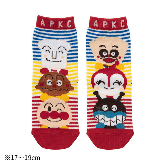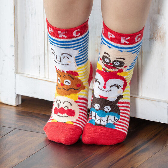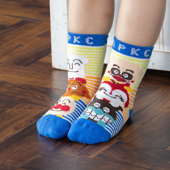 笑顔が可愛いアンパンマン、カレーパンマン、しょくぱんまん、ばいきんまん、ドキンちゃん、クリームパンダがデザインされており、左右で違う柄を楽しめます。