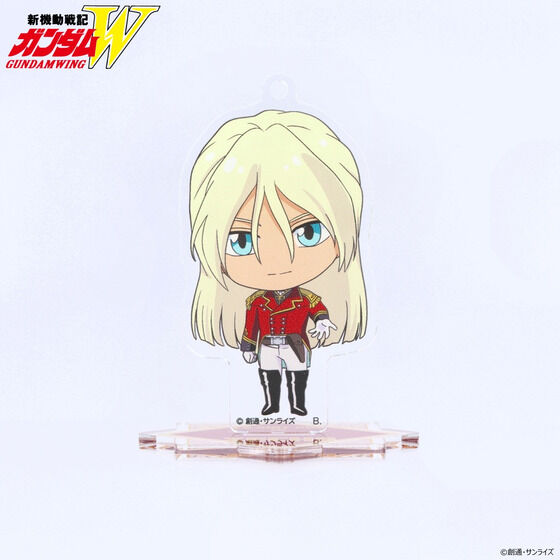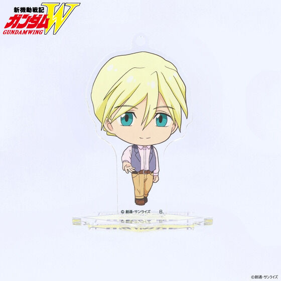 「手を繋ぎたい、でも少し照れくさい…思わずぎゅっとしたくなる可愛い仕草」をコンセプトとした、 バンダイオリジナルデフォルメシリーズです。 ●ヒイロ・ユイ 本体:約w46×h76mm ●デュオ・マックスウェル 本体:約w43×h77mm ●トロワ・バートン 本体:約w42×h76mm ●カトル・ラバーバ・ウィナー 本体:約w42×h75mm ●張五飛 本体:約w37×h73mm ●リリーナ・ドーリアン 本体:約w39×h74mm ●ゼクス・マーキス 本体:約w39×h73mm ●トレーズ・クシュリナーダ 本体:約w42×h74mm ●ルクレツィア・ノイン 本体:約w42×h73mm ●レディ・アン 本体:約w41×h72mm ●ドロシー・カタロニア 本体:約w39×h71mm ●キャスリン・ブルーム 本体:約w47×h71mm ●サリィ・ポオ 本体:約w38×h73mm