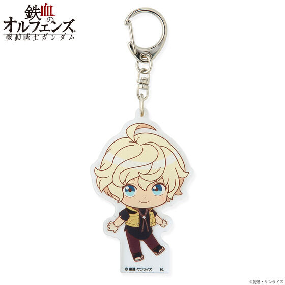 『機動戦士ガンダム 鉄血のオルフェンズ』オリジナルデフォルメイラストをデザインしたアクリルチャームです。 三日月・オーガス|オルガ・イツカ|ビスケット・グリフォン|ユージン・セブンスターク|昭弘・アルトランド|ノルバ・シノ|タカキ・ウノ|ヤマギ・ギルマトン|ライド・マッス|マクギリス・ファリド|ガエリオ・ボードウィン|アイン・ダルトン|ウィスタリオ・アファム 三日月・オーガス:約w43mm×h71mm オルガ・イツカ:約w35mm×h71mm ビスケット・グリフォン:約w38mm×h67mm ユージン・セブンスターク:約w42mm×h68mm 昭弘・アルトランド:約w38mm×h69mm ノルバ・シノ:約w38mm×h69mm タカキ・ウノ:約w40mm×h67mm ヤマギ・ギルマトン:約w39mm×h68mm ライド・マッス:約w42mm×h68mm マクギリス・ファリド:約w42mm×h68mm ガエリオ・ボードウィン:約w38mm×h67mm アイン・ダルトン:約w42mm×h67mm ウィスタリオ・アファム:約w44mm×h71mm