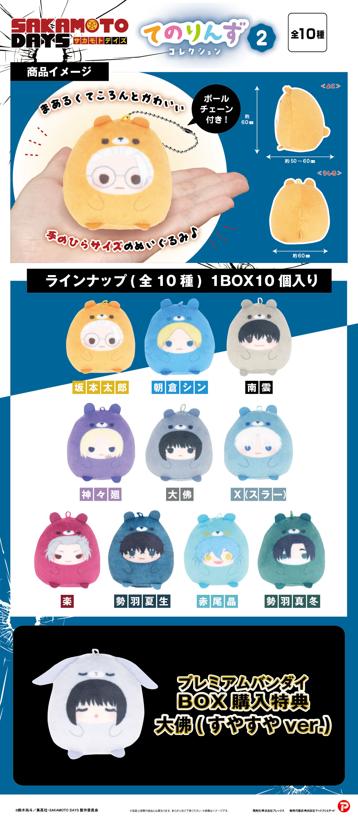 TVアニメ『SAKAMOTO DAYS』より、キャラクターたちが動物の着ぐるみを着た様なデザインの、 手のりサイズのぬいぐるみマスコット「てのりんずコレクション」第2弾が登場! プレミアムバンダイでBOX購入していただくと、購入特典として【大佛(すやすやver.)】が付属します! ※本商品は監修中の為、実際の商品と画像とは多少異なりますのでご了承ください。 【商品名】SAKAMOTO DAYS てのりんずコレクション2 <ラインナップ> 坂本 太郎・朝倉 シン・南雲・神々廻・大佛・X(スラ―)・楽・勢羽 夏生・ 赤尾 晶・勢羽 真冬 ※1BOXで全種揃います。 <プレミアムバンダイ BOX購入特典> 大佛(すやすやver.) 【価格】9,680円(税込)※BOX単位での販売となります。 【種類数】全10種 【本体サイズ】全長約60mm 【本体材質】ポリエステル 【対象年齢】15才以上 【商品の取り扱い】全国ホビー店、アニメ雑貨専門店などでの取り扱いがございます。 ※店頭では単品販売(クローズドボックス)の予定です。 ※プレミアムバンダイ限定特典付きの本商品は26年2月発送予定となりますが、 一部店舗では、26年1月中に店頭に並ぶ場合がございます。 【ご注文受付数】1注文につき6セットまで 【発売元】株式会社プレックス ※画像と実際の商品は多少異なる場合がございます。 ※本商品は準備数に限りがございます。準備数に達した場合、早期にご注文の受付を終了させていただくことがございます。 ※注文期間は予告なく変更となる場合があります。 |