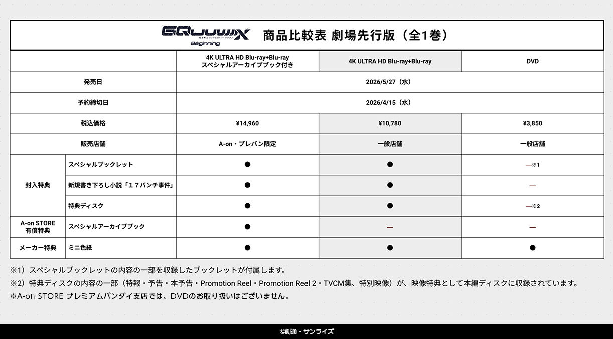 【ご注意(必ずお読みください)】 ※本商品は、A-on STORE(バンダイナムコフィルムワークス公式ショップ)、その他一般店にて販売される商品と同じ仕様となります。 【発売元】 株式会社バンダイナムコフィルムワークス
