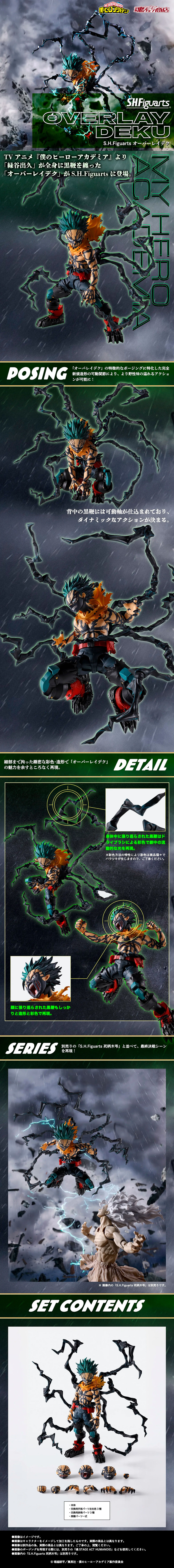 S.H.Figuartsヒロアカシリーズに「オーバーレイデク」が来た! TVアニメ『僕のヒーローアカデミア』より「オーバーレイデク」がS.H.Figuartsに登場! 身体中に張り巡らされた黒鞭は精密な彩色で再現! さらに、背中の黒鞭には可動軸が仕込まれており、ダイナミックなアクションが決まる! |