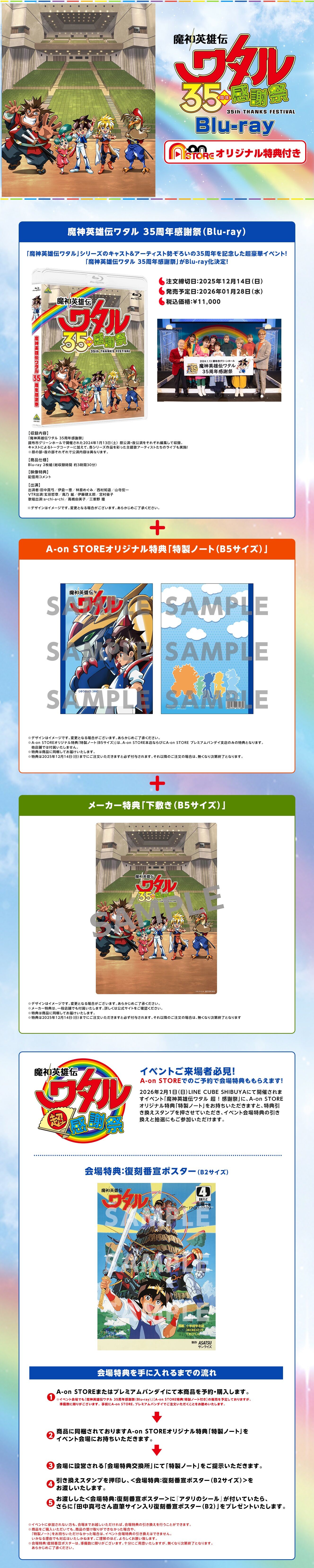 ※イベント会場でも「魔神英雄伝ワタル 35周年感謝祭(Blu-ray)【A-on STORE特典:特製ノート付き】」の販売を予定しておりますが、準備数に限りがございます。
