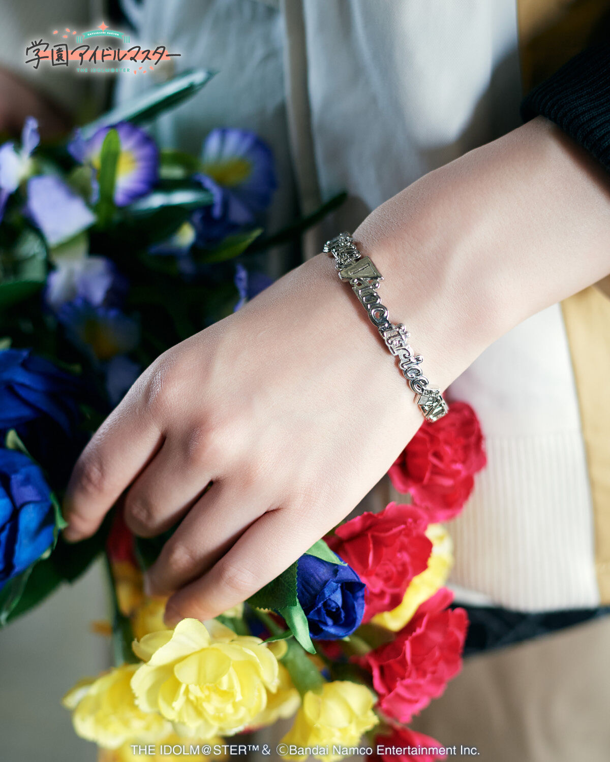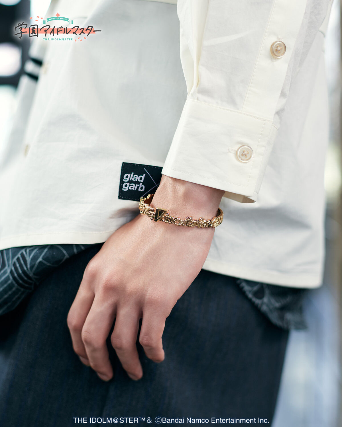 ■Saki Bangle(ゴールド/シルバー 全2種) gladgarbと『学園アイドルマスター』がコラボレーション。 花海咲季のエッセンスが手元を飾るSaki Bangle。 バングルを形作るアルファベットは花海咲季のソロ楽曲『Fighting My