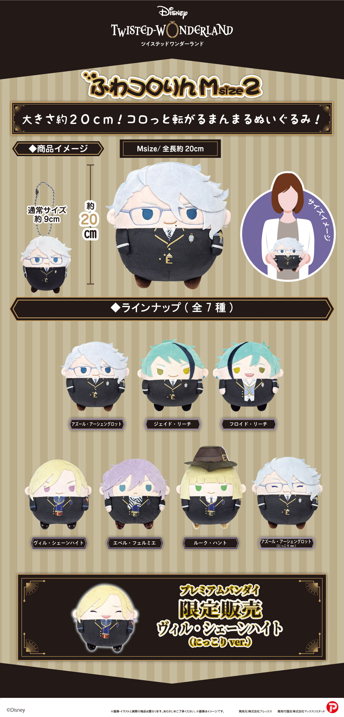『ツイステッドワンダーランド』より、「ふわコロりんMsize2」が全8種で登場! まんまるでふわふわコロっとしたディフォルメ形状の、全長約20cmのぬいぐるみです。 プレミアムバンダイ限定商品として【ヴィル・シェーンハイト(にっこりver.) 】がラインナップ! ※本商品は監修中の為、実際の商品と画像とは多少異なりますのでご了承ください。 【商品名】ツイステッドワンダーランド ふわコロりんMsize2 <ラインナップ> アズール・アーシェングロット/ジェイド・リーチ/フロイド・リーチ/ヴィル・シェーンハイト/エペル・フェルミエ/ルーク・ハント/ アズール・アーシェングロット(にっこりver.) <プレミアムバンダイ限定商品> ヴィル・シェーンハイト(にっこりver.) 【価格】2,200円(税込) 【種類数】全8種(うち1種はプレミアムバンダイ限定商品) 【本体サイズ】約W200×H200mm 【本体材質】ポリエステル 【対象年齢】15才以上 【生産エリア】中国 【商品の取り扱い】全国ホビー店、アニメ雑貨専門店での取り扱いがございます。 ※店頭では単品販売(クローズドボックス)の予定です。 ※プレミアムバンダイ発送分は26年4月発送予定となりますが、一部店舗では26年3月中に店頭に並ぶ場合がございます。 【発売元】株式会社プレックス ※画像と実際の商品は多少異なる場合がございます。 ※本商品は準備数に限りがございます。準備数に達した場合、早期にご注文の受付を終了させていただくことがございます。 |