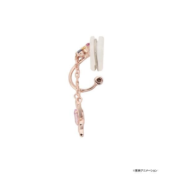 ピアス、イヤリングは「キュアドリーム」、「キュアルージュ」、「キュアレモネード」、「キュアミント」、「キュアアクア」の絆の輪をお花モチーフで表現し、 作品の世界観溢れるデザインがポイントです。