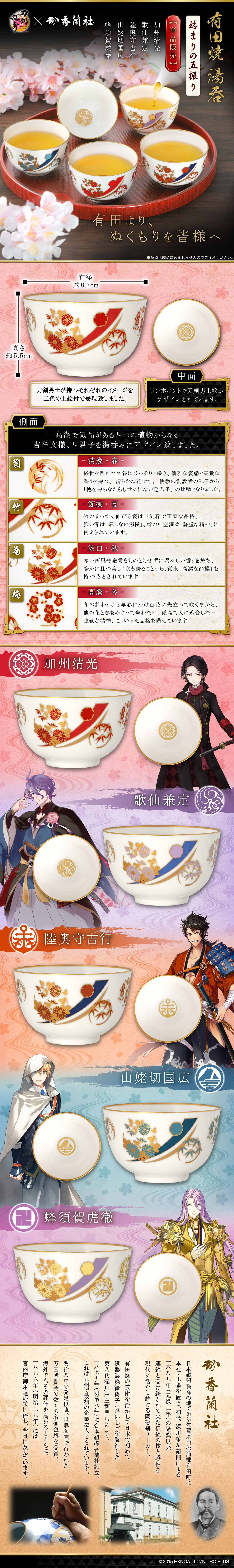 刀剣乱舞ONLINE×香蘭社 有田焼湯呑 -始まりの五振り-【五種セット販売】