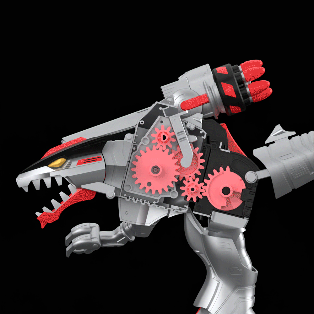 『未来戦隊タイムレンジャー』(2000年放送)より大型恐竜型ロボ、ブイレックスが登場。 前代未聞の可動域で恐竜モードからロボモードに変形!別売りのタイムロボを恐竜モードの背中に搭乗させることも可能。