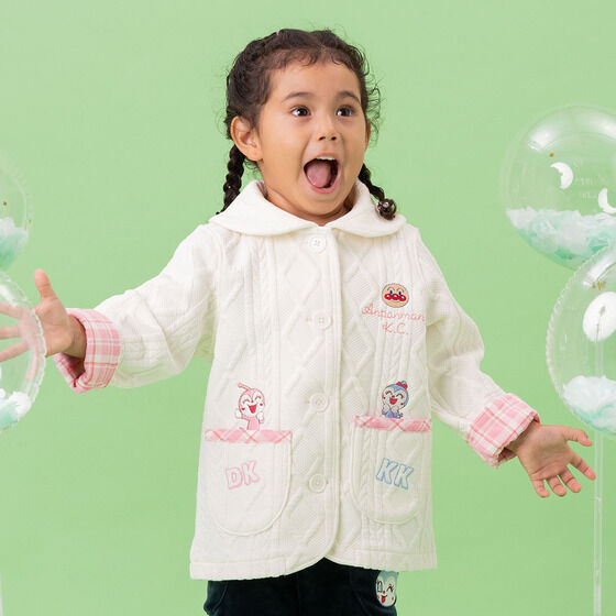 高級感のあるジャカードキルト生地を使用したヘチマ襟のジャケット! 左胸にはアンパンマンのお顔刺繍、ネイビー配色のポケットにはばいきんまんとめいけんチーズ、オフ白配色にはドキンちゃんとコキンちゃんが顔を覗かせた刺繍が入っています。 ポケットや袖口への部分使いのボーダーやチェックがポイントで、袖を折り返しても可愛く着用いただけます。 【ANPANMAN KIDS COLLECTION/ アンパンマンキッズコレクション】は 「着ているだけで笑顔になる」をコンセプトに、 ”アンパンマンといつでも一緒にいたい”という こども達の夢をかなえるコレクションです。 保育園や幼稚園で活躍するデイリー服から、 おでかけ着・ギフトにぴったりの雑貨まで、 幅広く取り扱っています。 <カラー> オフ白、ネイビー <素材> オフ白 本体:ポリエステル98% 、ポリウレタン2% チェック部分:ポリエステル59% 、レーヨン41% ネイビー 本体: ポリエステル98% 、ポリウレタン2% ボーダー部分:綿96% 、ポリエステル 4% <サイズ>(約) 90cm :着丈40cm 身巾33cm 100cm:着丈43cm 身巾35cm 110cm:着丈47cm 身巾37cm 120cm:着丈49cm 身巾39cm <生産エリア> ベトナム <品番> 2813390 |
