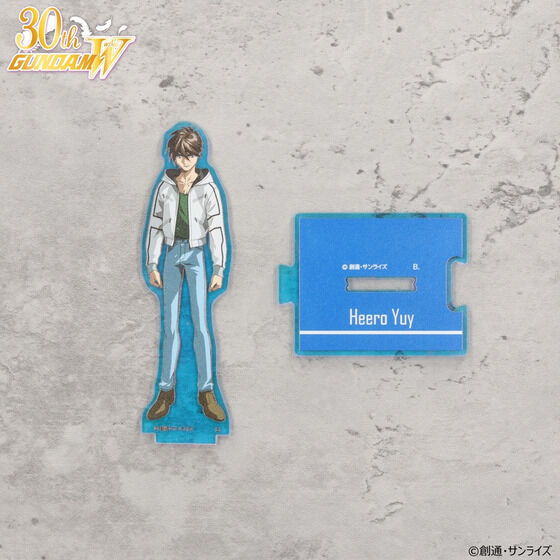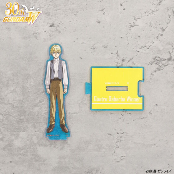 30周年イラストを使用したシリーズになります。 ※各種別売りです。 ・ヒイロ・ユイ 約W30×H101mm ・デュオ・マックスウェル 約36×H99mm ・トロワ・バートン 約W29×H103mm ・カトル・ラバーバ・ウィナー 約W27×H98mm ・張 五飛 約W29×H97mm ・リリーナ・ドーリアン 約W36×H98mm ・リリーナ・ドーリアン(ワンピース) 約32×H99mm ・リリーナ・ドーリアン(ジャケット) 約32×H99mm ・ゼクス・マーキス 約W37×H117mm ・竜 妹蘭 約W27×H97mm ・台座(共通) 約W60×H46mm ■生産エリア:日本 ■対象年齢:15才以上 ※掲載の商品は試作品のため、実際の商品とは多少異なります。 ※アクリル製品は、製造・梱包・輸送過程において、細かい気泡跡や傷が生じることがございます。 あらかじめご了承ください。 ※オーロラ仕様のため、角度や照明により見え方が異なる場合があります。 ※モニター設定や照明等により色味が異なる場合があります。 ※台座への抜き差しを繰り返すと、ホログラムシートがはがれる場合があります。 不必要な抜き差しはおやめください。 ※「ビッグアクリルスタンド」は付属しません。 (C)創通・サンライズ |