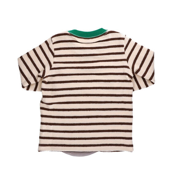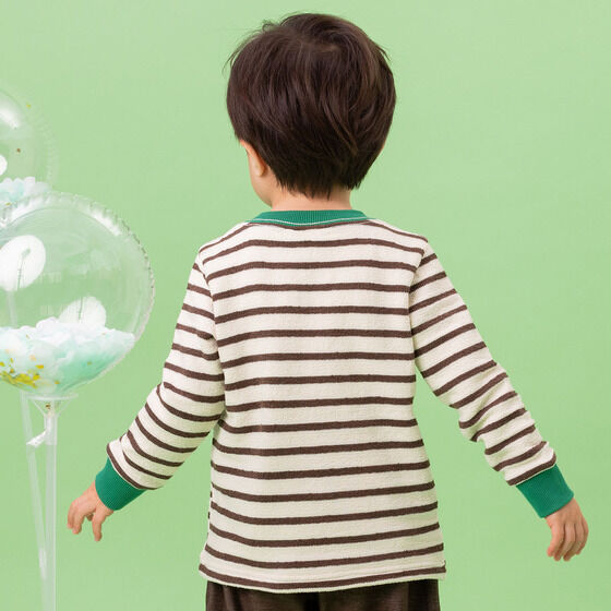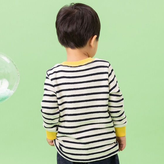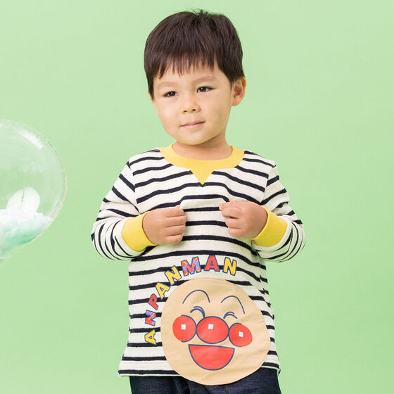 変わり編み裏毛素材のボーダー生地が爽やかなトレーナー! ネイビー配色の裾にはアンパンマン、ブラウン配色にはだだんだんの大きなお顔アップリケが施されています。 ロゴはカラフルなプリントで表現されています。 ボーダーとリブの配色がカラフルで、明るいコーディネートに仕上がります。 【ANPANMAN KIDS COLLECTION/ アンパンマンキッズコレクション】は 「着ているだけで笑顔になる」をコンセプトに、 ”アンパンマンといつでも一緒にいたい”という こども達の夢をかなえるコレクションです。 保育園や幼稚園で活躍するデイリー服から、 おでかけ着・ギフトにぴったりの雑貨まで、 幅広く取り扱っています。 <カラー> ネイビー、ブラウン <素材> 本体:綿96% 、ポリエステル4% リブ部分:綿67%、レーヨン31%、ポリウレタン2%