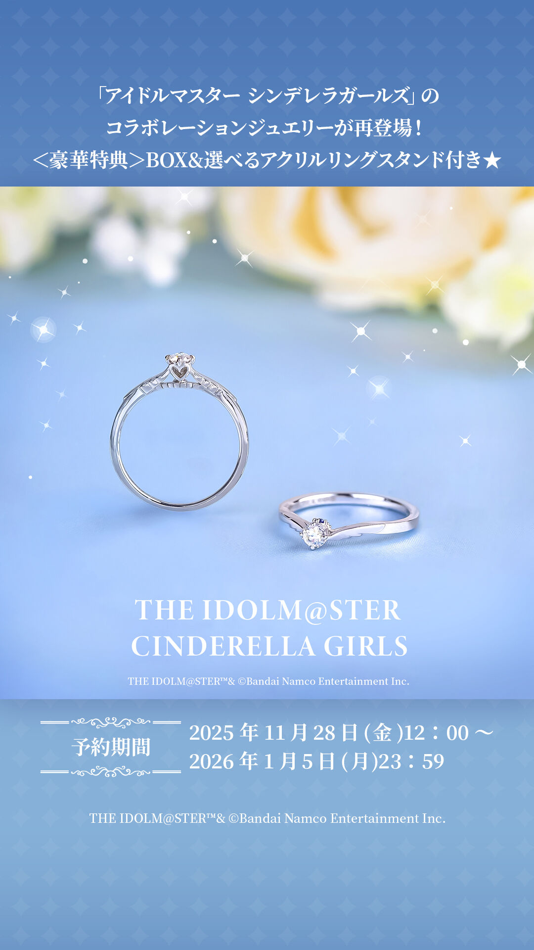 生産エリア:日本 【注意事項】 ・対象年齢:15歳以上 ・商品1点ごとに1つBOX、アクリルリングスタンドが付きます。 ・素材の特性上、石の色には個体差がありますので、ご了承ください。 ・写真はサンプルの為、多少の仕様変更がある場合があります。 ・お届け時期を変更し、ご注文を承る場合がございます。 ・準備数に達した場合、早期に販売を終了させていただくことがございます。 ・商品仕様等は予告なく変更になる場合があります。 ・掲載している写真は開発中のため、実際の商品とは多少異なる場合があります。 ・商品、特典およびサイズ間違いにご注意下さい。お客様都合による返品、交換は受付いたしかねます。 ・天然石は色味や内包物など多少の個体差がございますのでご了承下さい。 ・サイズ直しの際には別途修理代が発生致しますのでご了承下さい。 ・本商品は2025年6月発売「アイドルマスター シンデレラガールズ×TAKE-UP 「ST@iRs to 10th Anniversary」 イメージリング」の本体流用・ボックス、特典替え商品です |