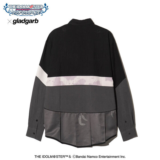 ■Kaede Takagaki Shirt(ホワイト/ブラック 全2種) 『夜風の誘い』で高垣 楓が着用したドレスをレトロでアヴァンギャルドなシャツへと落とし込んだKaede Takagaki Shirt。 首や胸元に見られるディテールはボタニカルな刺繍であしらって、ウエスタンシャツを思わせるオールドアメリカンなムードに。 髪飾りは胸元にヴィンテージアロハシャツを思わせるプリントで表現しています。 さらには腕に巻いたアクセサリーはシャイニーな生地で、 足元にかけて広がるギャザーやドットパーツも切り替えとプリーツで丹念にデザイン。 バックスタイルにも着想となった衣装に見られるフェザーをプリントして作品への愛情を隅々まで込めました。 ・商品サイズ:M/L/XL M …着丈74cm 身幅58cm 肩幅49cm 袖丈57.5cm