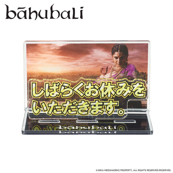 バーフバリの名シーンを切り取った、メッセージ付きのアクリルスタンドです。 お部屋や仕事場で役に立つこと間違いなしの「有給休暇中」や「離席中」など、メッセージを多数ご用意しております。 ■サイズ: 【本体】 約W85×H52mm 【台座】 約W85×H49mm 【文字】 有給休暇中:約W66×H20mm 離席中:約W41×H20mm しばらくお休みをいただきます。:約W80×H31mm ■素材:アクリル ■生産エリア:日本 ■対象年齢:15歳以上 ※アクリル製品は、製造・梱包・輸送過程において、細かい気泡跡や傷が生じることがございます。 あらかじめご了承ください。 ※商品画像はイメージです。実際の商品とは異なりますので予めご了承ください。 ©ARKA MEDIAWORKS PROPERTY, ALL RIGHTS RESERVED. |