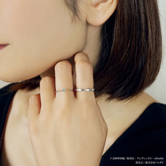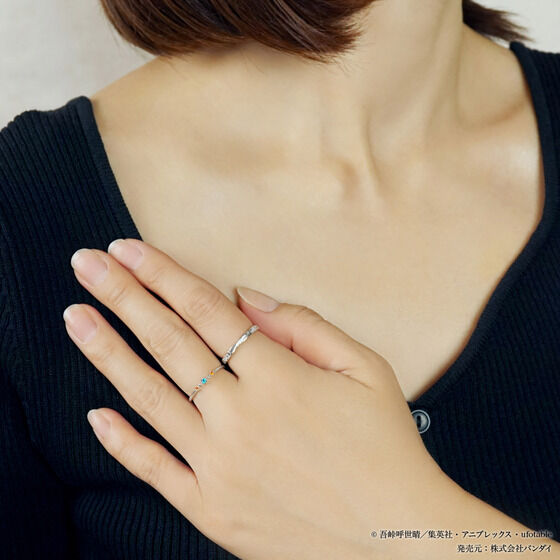 石付きのリングはセンターに義勇をイメージしたブルーのストーンをセッティングし、