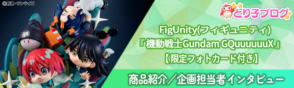 「FigUnity(フィギュニティ)」シリーズ第四弾は『機動戦士Gundam GQuuuuuuX(ジークアクス)』が登場! 「Figure」+「Unity(団結)」を組み合わせたコンセプトで、 みんな一緒が嬉しい!なディフォルメフィギュアです。 キラキラに飛び込んでいくシチュエーションをイメージして アマテ・ユズリハ(マチュ)、ニャアン、シュウジ・イトウの3人を立体化いたしました。 カラフルな台座からキャラクターが勢いよく今にも飛び出そうなシチュエーションをイメージ。 プレミアムバンダイ限定で撮り下ろしフォトカードが付属いたします。 原型/彩色:株式会社ピンポイント デフォルメデザイン協力:株式会社スタジオヴィガ 【セット内容】 ・彩色済み完成品フィギュア…1・限定フォトカード…1 【商品素材】 PVC、ABS 【対象年齢】 15才以上 【商品サイズ】 ・全高:約130mm ・全幅:約110mm ・奥行:約110mm 【ご注文受付数】 お一人様3個まで