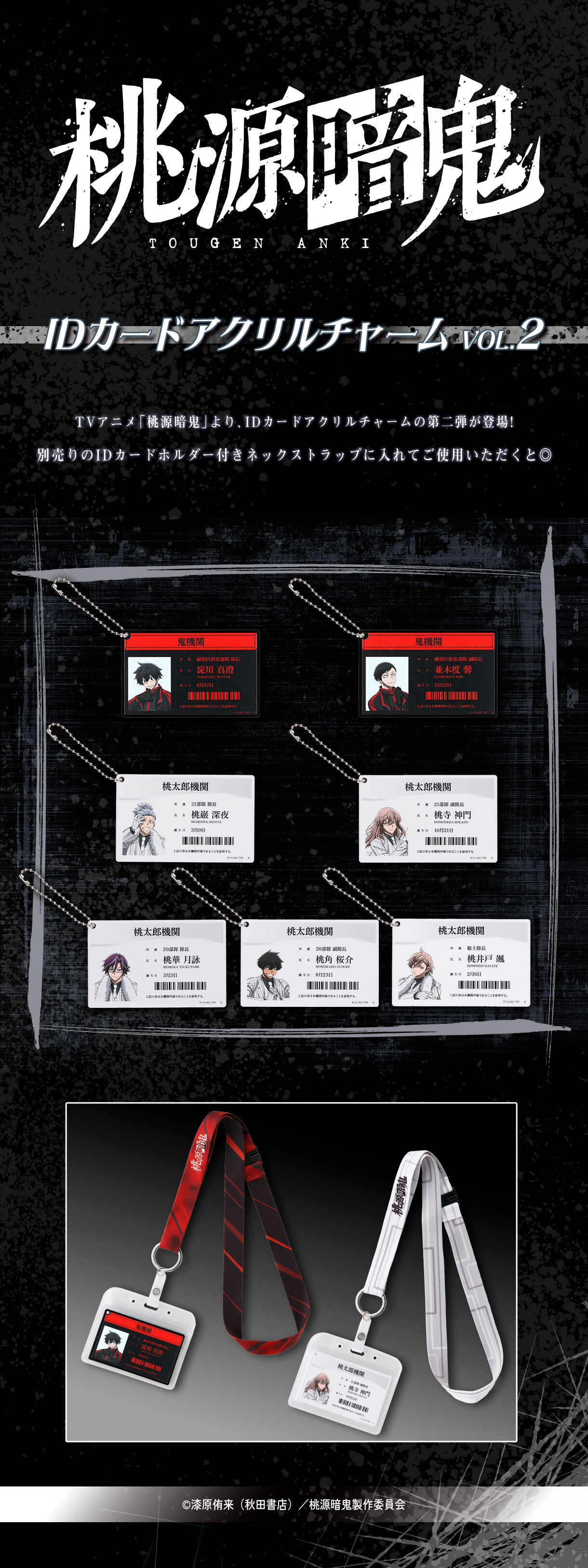 ★全7種★ 上限に達し次第、受注を終了させていただきます。 TVアニメ『桃源暗鬼』より、IDカードアクリルチャーム vol.2が登場! IDカードをイメージしたついつい集めたくなってしまうアイテムです。 別売りのIDカードホルダー付きネックストラップと一緒に使用するのがおすすめです! 【商品情報】