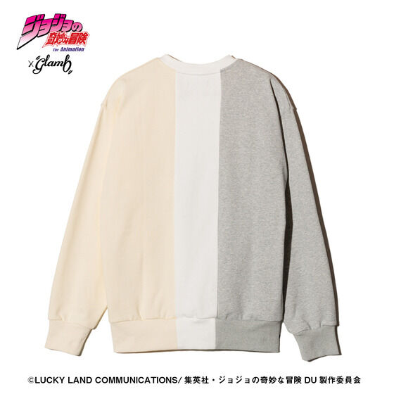 Koichi's Stand Sweat lambが得意とする切り替えデザインに広瀬康一のスタンド「エコーズ」の進化を連ねたKoichi's Stand Sweat。 リメイクしたかのような3分割のデザインで向かって左からAct 1、Act 3、Act 2を描写。 ヴィンテージカレッジスウェットを思わせるルックに広瀬康一の勇敢な青年としてのキャラクター像を表現しています。 テキスタイルに用いたのは12.7オンスヘビーウェイトの裏パイル生地。サイジングは身幅をやや広めに設けたアーバンなルーズシルエットとなっています。 【サイズ】単位:cm