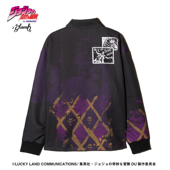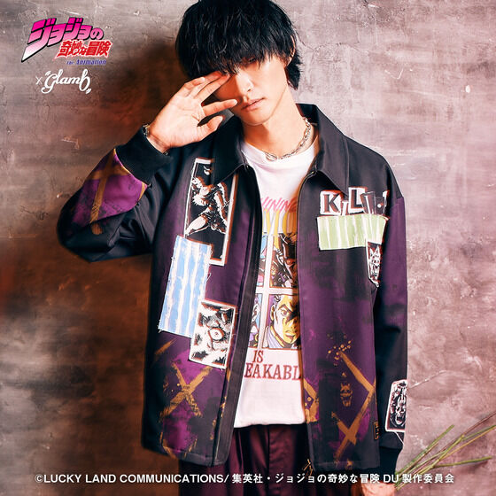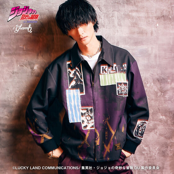 Killer Queen Jacket II 宿敵・吉良吉影の猟奇的な人物像とそのスタンドをストリートへと写し出すKiller Queen Jacket II。 吉良吉影のネクタイの柄が浮かぶボディに、 UKパンクを思わせる無秩序なデザインワークでキャラクターのエッセンスをコラージュ。 作中の場面やスタンドのモチーフ、彼の着用するシャツのストライプに加えて 左腕には第2の爆弾「シアーハートアタック」もあしらった、 隅々まで作品へのオマージュを込めた仕上がりとなっております。 身幅を広く設けたビッグシルエットは着丈を短めに設定。 ストリートの今を感じていただけるフィッティングとなっております。 【サイズ】単位:cm