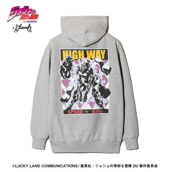 Highway Star Hoodie 噴上裕也のスタンド「ハイウェイ・スター」がフーディをスタイリッシュに昇華するHighway Star Hoodie。 大胆なバックプリントで、オルタナティブロック的なポスター調にスタンドをデザイン。 噴上裕也の誇り高い伊達男としてのイメージを表現しながら、フロントはワンポイントでモードな印象にまとめました。 ボディにはヴィンテージライクでタフな素材感の12.7オンスヘヴィウェイト裏毛生地を使用。 身幅とアーム幅にゆとりを設けたルーズシルエットによりストリートフレンドリーな着こなしをお楽しみいただけます。 【サイズ】単位:cm