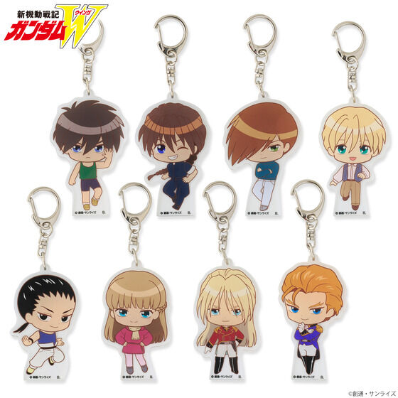 『新機動戦記ガンダムW』オリジナルデフォルメイラストをデザインしたアクリルチャームです。 こちらはランダム販売のページです。 (全種セットのご予約ページはこちら→https://p-bandai.jp/item/item-1000244885/ ) 【商品情報】 ■サイズ ヒイロ 約W43mm×H70mm デュオ 約W41mm×H69mm トロワ 約W43mm×H69mm カトル 約W39mm×H66mm 五飛 約W38mm×H65mm リリーナ 約W38mm×H67mm ゼクス 約W37mm×H67mm
