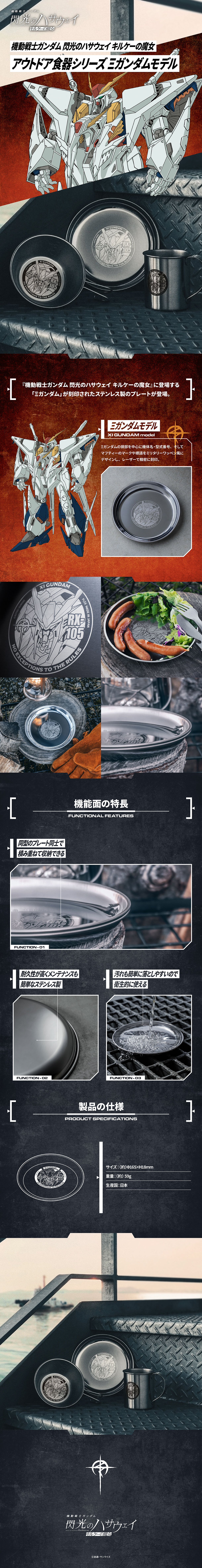 『機動戦士ガンダム 閃光のハサウェイ キルケーの魔女』に登場するモビルスーツ「Ξガンダム」をモチーフにしたデザインを刻印したプレート。耐久性が高くメンテナンスもしやすいステンレス製で、アウトドアでの使用はもちろん普段使いの食器など様々なシーンで活躍するアイテムです。