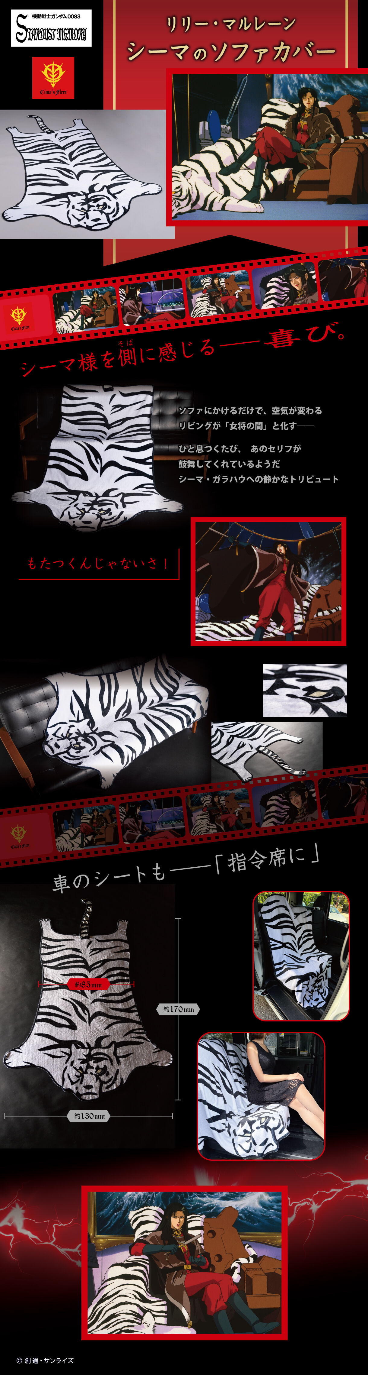 『機動戦士ガンダム0083 STARDUST MEMORY』より、シーマ艦隊の旗艦であるザンジバル?級機動巡洋艦リリー・マルレーンの指令席でシーマ様が愛用されているソファカバーを再現いたしました!