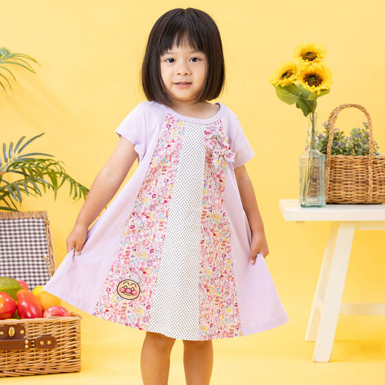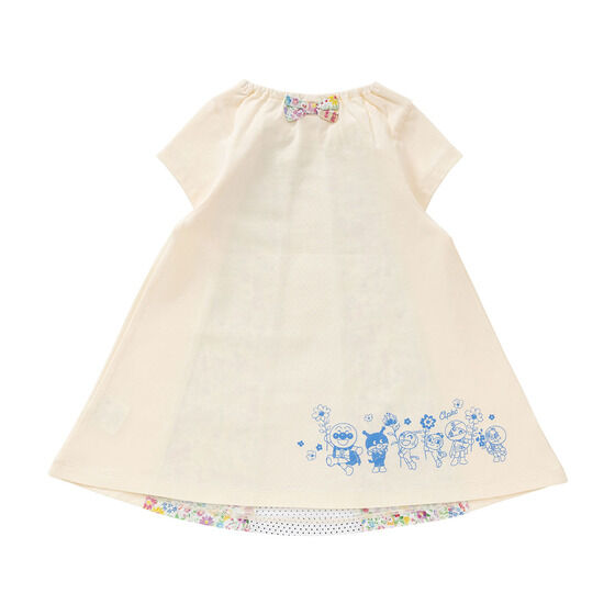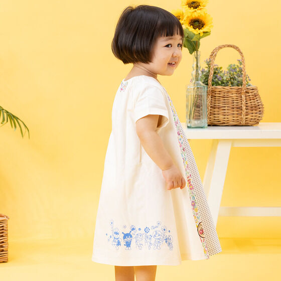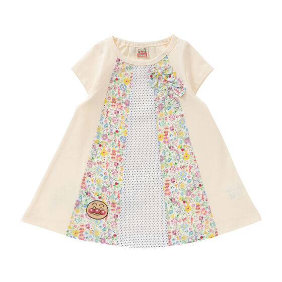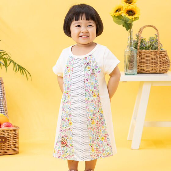 切替がおしゃれなパッチワークワンピース! 無地とドット柄、アンパンマンとなかまたちがお花に囲まれた総柄で切替されています。 右裾にはアンパンマンのお顔アップリケが施されており、バックプリントはばいきんまんやロールパンナのデザインです。 左胸と後ろのリボンもポイントです。 【ANPANMAN KIDS COLLECTION/ アンパンマンキッズコレクション】は 「着ているだけで笑顔になる」をコンセプトに、 ”アンパンマンといつでも一緒にいたい”という こども達の夢をかなえるコレクションです。 保育園や幼稚園で活躍するデイリー服から、 おでかけ着・ギフトにぴったりの雑貨まで、 幅広く取り扱っています。 <カラー> クリーム、ラベンダー <素材> 本体:綿100% 水玉部分:綿100% プリント部分:綿100%