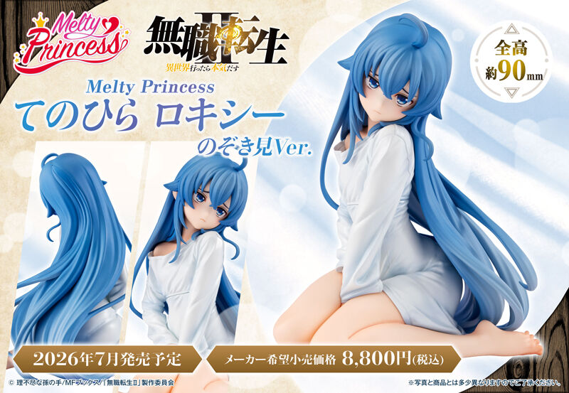 TVアニメ『無職転生 〜異世界行ったら本気だす〜』より ロキシーが【Melty Princess てのひらシリーズ】に再び登場!! 作中であの夜見せたロキシーの特別なひと時を、 てのひらサイズで可愛くも艶やかに立体化! 普段の衣装とは違う、寝間着姿で大人な雰囲気の ロキシー師匠を是非ご堪能下さい。 ------------------------------------------------------------------------------------------------
