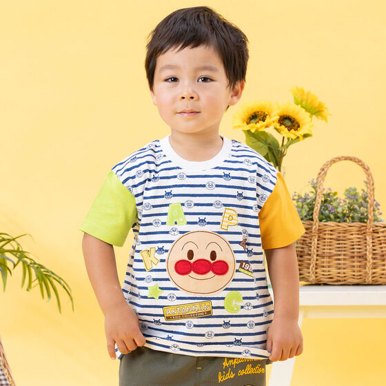 アンパンマンお顔ボーダー半袖Tシャツ / ネイビー / 110cm
