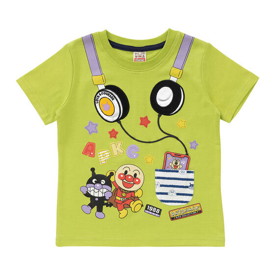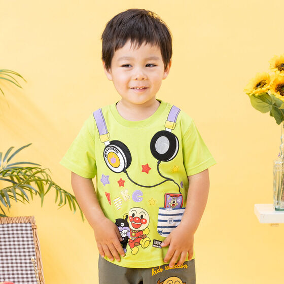 ヘッドフォンのフェイクデザインがおしゃれな半袖Tシャツです。 ヘッドフォン部分はアップリケ刺繍、コード部分は立体感のある発泡プリントで表現し、遊び心のあるデザインに仕上げました。 ボーダー柄のポケットには別布を使用し、細部までこだわった一枚です。 【ANPANMAN KIDS COLLECTION/ アンパンマンキッズコレクション】は 「着ているだけで笑顔になる」をコンセプトに、 ”アンパンマンといつでも一緒にいたい”という こども達の夢をかなえるコレクションです。 保育園や幼稚園で活躍するデイリー服から、 おでかけ着・ギフトにぴったりの雑貨まで、 幅広く取り扱っています。 <カラー> オフ白、ライム <素材> 本体:綿100% リブ部分:綿95%、ポリウレタン5%