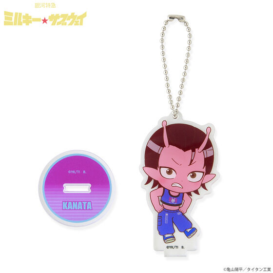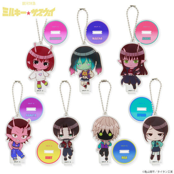 『銀河特急 ミルキー☆サブウェイ』デフォルメイラストのアクリルスタンドチャームが登場! バンコレ!オリジナルデザインです。 アクリルスタンドとしても、チャームとしても楽しんでいただけます。 ※こちらはランダム販売のページです。全種セットはこちら→https://p-bandai.jp/item/item-1000244922/ ■種類:チハル、マキナ、アカネ、カナタ、カート、マックス、リョーコ ■サイズ 台座(共通):約W40mm×H40mm チハル約W45×H78mm マキナ約W52×H78mm アカネ約W48×H82mm カナタ約W42×H76mm マックス約W45×H79mm カート約W42×H78mm リョーコ約W41×H79mm ■素材:アクリル ■生産エリア:日本 ■対象年齢15才以上 ※種類はお選びいただけません。 ※アクリル製品は、製造・梱包・輸送過程において、細かい気泡跡や傷が生じることがございます。あらかじめご了承ください。 ※お届け時期を変更し、ご注文を承る場合がございます。 ※準備数に達した場合、早期に販売を終了させていただくことがございます。 ※商品仕様等は予告なく変更になる場合があります。 ※掲載している写真は開発中のため、実際の商品とは多少異なる場合があります。 (C)亀山陽平/タイタン工業 |