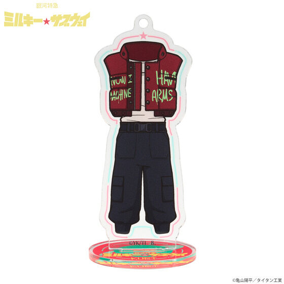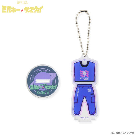 『銀河特急 ミルキー☆サブウェイ』衣装イラストのアクリルスタンドチャームが登場! バンコレ!オリジナルデザインです。 アクリルスタンドとしても、チャームとしても楽しんでいただけます。 全7種展開です。 ※こちらはランダム販売のページです。全種セットはこちら→https://p-bandai.jp/item/item-1000244872/ ■種類:チハル、マキナ、アカネ、カナタ、カート、マックス、リョーコ ■サイズ 共通台座:約W40×H40mm チハル:約W52×H73mm マキナ:約W51×H74mm アカネ:約W46×H84mm カナタ:約W33×H81mm カート:約W36×H90mm マックス:約W47×H89mm リョーコ:約W44×H76mm ■素材:アクリル ■生産エリア:日本 ■対象年齢15才以上 ※種類はお選びいただけません。 ※アクリル製品は、製造・梱包・輸送過程において、細かい気泡跡や傷が生じることがございます。あらかじめご了承ください。 ※台座への抜き差しを繰り返すと、ホログラムシートが剥がれる場合があります。不必要な抜き差しはおやめください。 ※お届け時期を変更し、ご注文を承る場合がございます。 ※準備数に達した場合、早期に販売を終了させていただくことがございます。 ※商品仕様等は予告なく変更になる場合があります。 ※掲載している写真は開発中のため、実際の商品とは多少異なる場合があります。 (C)亀山陽平/タイタン工業 |