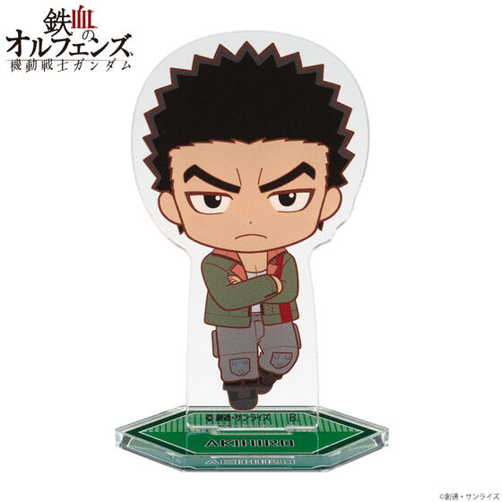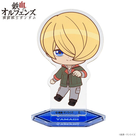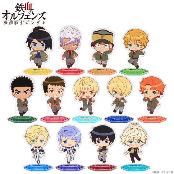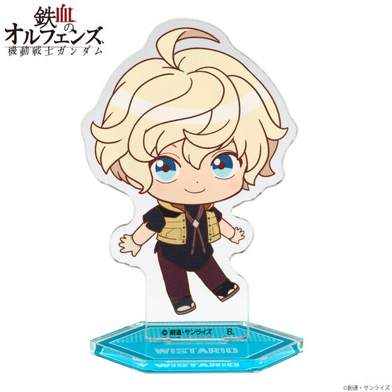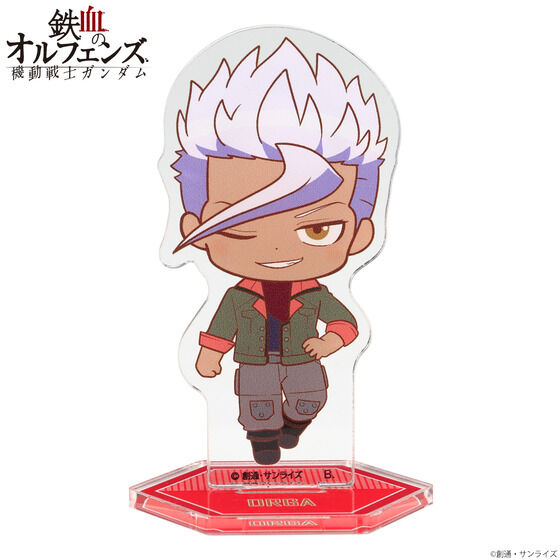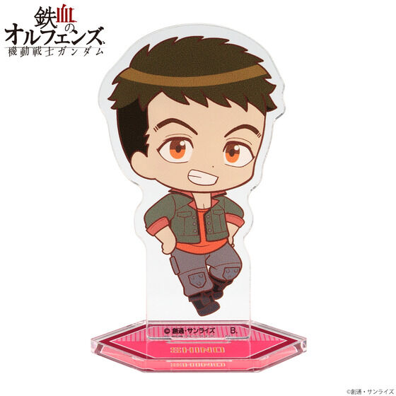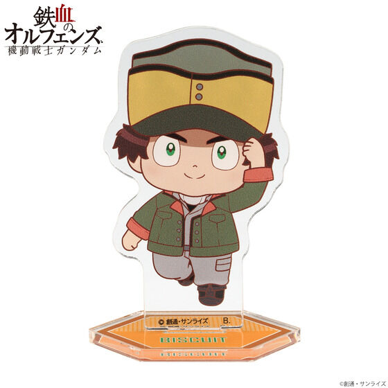 『機動戦士ガンダム 鉄血のオルフェンズ』オリジナルデフォルメイラストをデザインしたアクリルスタンドです。 三日月・オーガス|オルガ・イツカ|ビスケット・グリフォン|ユージン・セブンスターク|昭弘・アルトランド|ノルバ・シノ|タカキ・ウノ|ヤマギ・ギルマトン|ライド・マッス|マクギリス・ファリド|ガエリオ・ボードウィン|アイン・ダルトン|ウィスタリオ・アファム 三日月・オーガス:約W48mm×H78mm オルガ・イツカ:約W39mm×H77mm ビスケット・グリフォン:約W43mm×H74mm ユージン・セブンスターク:約W47mm×H74mm 昭弘・アルトランド:約W42mm×H75mm ノルバ・シノ:約W43mm×H75mm タカキ・ウノ:約W45mm×H73mm ヤマギ・ギルマトン:約W44mm×H74mm ライド・マッス:約W47mm×H74mm マクギリス・ファリド:約w42mm×h68mm ガエリオ・ボードウィン:約W42mm×H73mm アイン・ダルトン:約W47mm×H73mm ウィスタリオ・アファム:約W50mm×H77mm