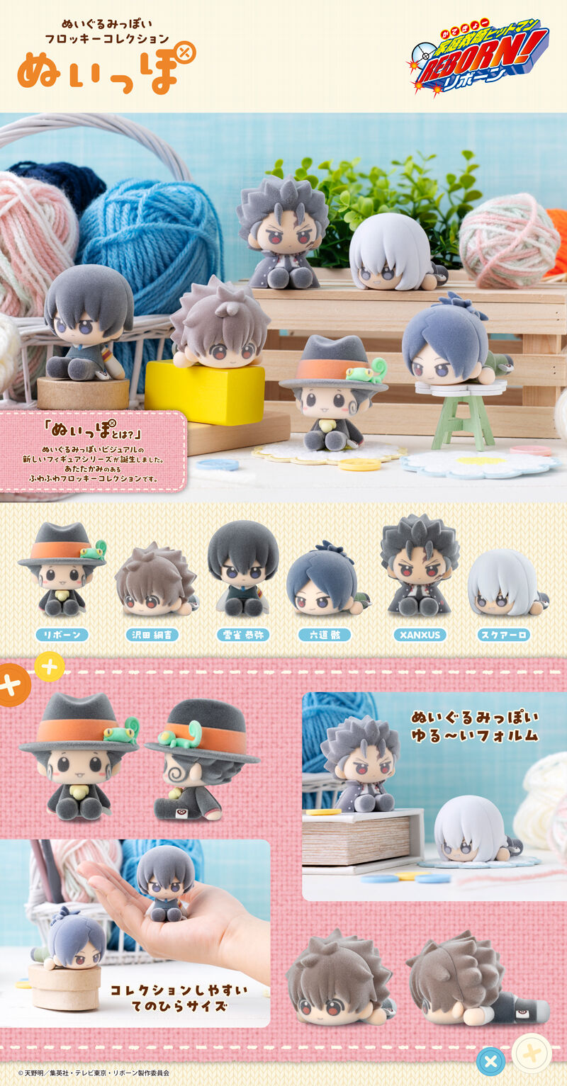 ぬいぐるみっぽいビジュアルのふわふわフロッキーフィギュアコレクション! ころんとした手乗りサイズでふわっとあなたに寄り添います。 第1弾としてアニメ『家庭教師ヒットマンREBORN!』からリボーンたちが登場です。 ※全6種がセットになった商品です。 @リボーンA沢田綱吉B雲雀恭弥 C六道骸DXANXUSEスクアーロ ------------------------------------------------------------------------------------------------