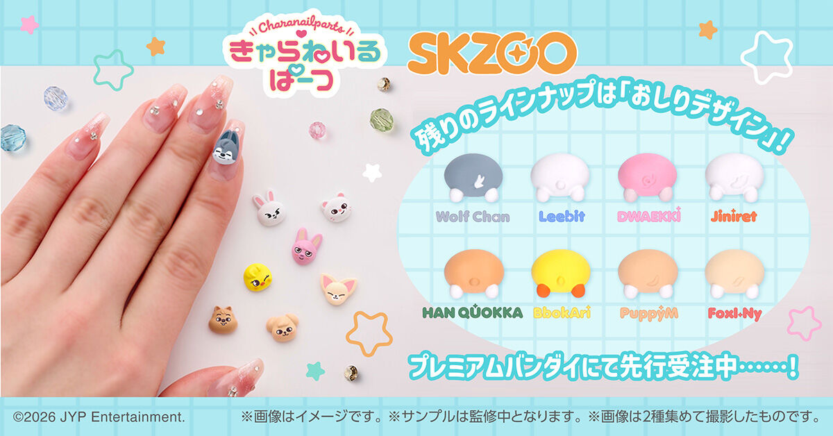 精密デザインの3Dネイルパーツ「きゃらねいるぱーつ」からSKZOOが登場! キャラクター単体でも、組み合わせてもOK☆ 配置や色次第でアレンジ無限大! 指先で楽しむSKZOOの世界観♥ ●Vol.1 ラインナップ Wolf Chan Leebit DWAEKKI Jiniret ●Vol.2 ラインナップ HAN QUOKKA BbokAri PuppyM FoxI.Ny 【セット内容】 ネイルパーツ 計8個 接着用両面シール 【サイズ】 サイズ:ネイルパーツ縦サイズ 約0.9〜1.1cm 【製品素材】 ネイルパーツ:ABS 【対象年齢】 15歳以上 【生産エリア】 中国 ※準備数に達した場合、販売を終了させていただくことがあります。 ※ページにアクセスした時点で販売が終了している場合があります。 ※掲載している写真は開発中のため、実際の商品とは多少異なる場合があります。 ※本商品は、2026年8月に一般店頭で発売されるされる「きゃらねいるぱーつ SKZOO Vol.1 / Vol.2」と同一の内容です。 |
