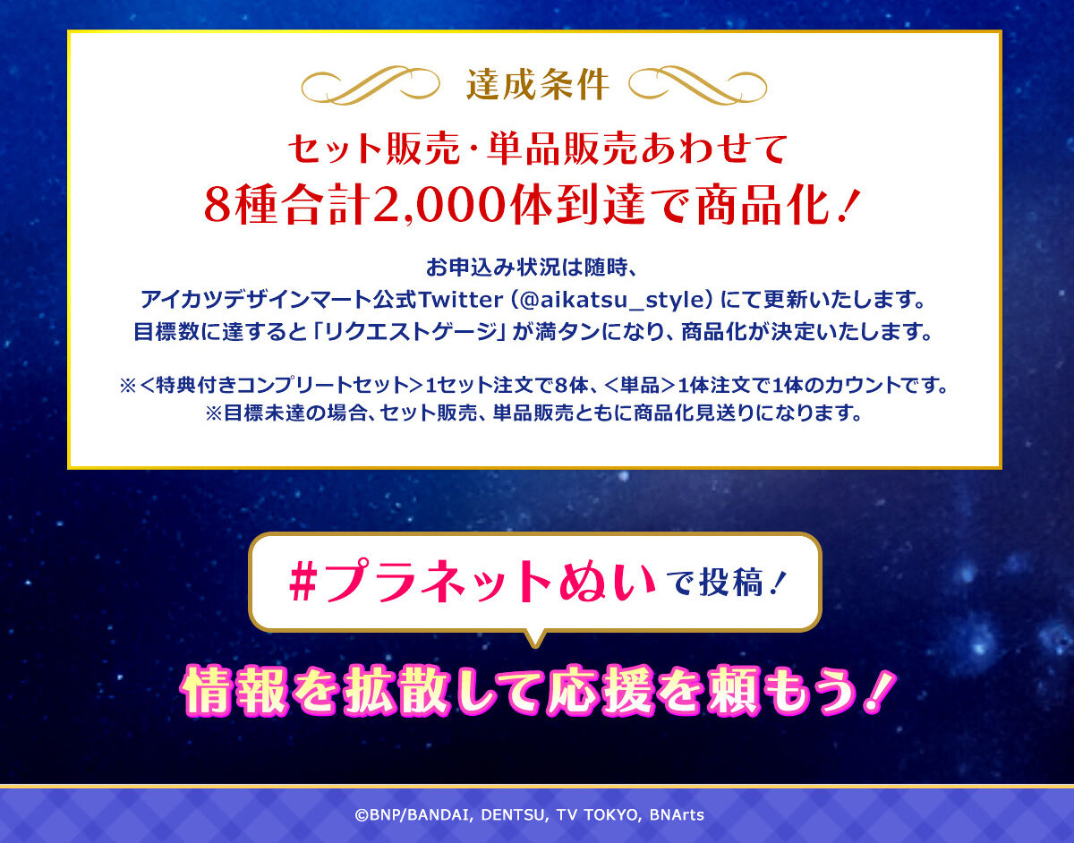 ★リクエスト販売★ セット販売・単品販売あわせて8種計2,000体達成で商品化決定★