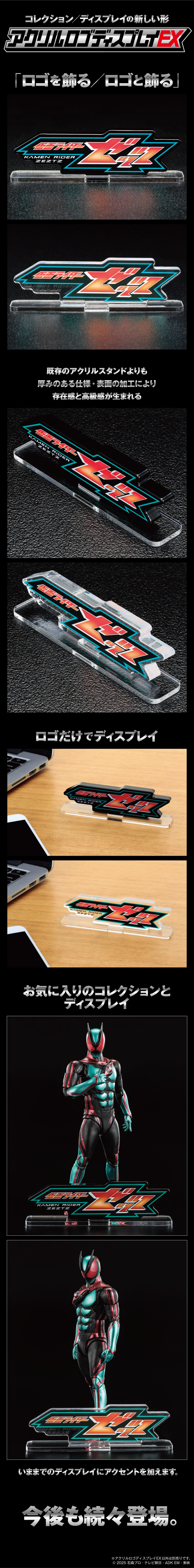 ※「アクリルロゴディスプレイEX 仮面ライダーゼッツ」以外は別売りです。 ※アクリル製品は、製造・梱包・輸送過程において、細かい気泡跡や傷が生じることがございます。 あらかじめご了承ください。 ※商品は速やかに開封していただき、袋から出してください。 また、袋に入れた状態で長期間の保管はお避けください。 ※ディスプレイ方法はイメージです。