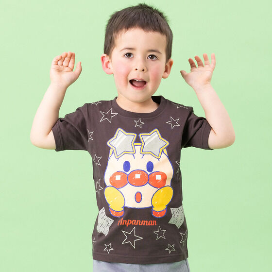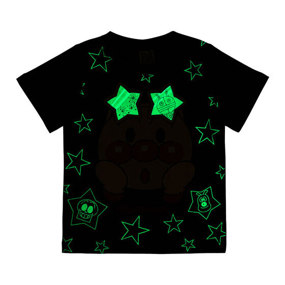 アンパンマンとばいきんまんのお顔を大きくプリントした、暗闇で光る半袖Tシャツ!