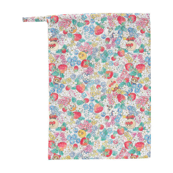 いちごとお花とアンパンマンたちの「いちご総柄」とカラフルなAPKCロゴとアンパンマンたちの「APKC総柄」の2種類のデザインです。