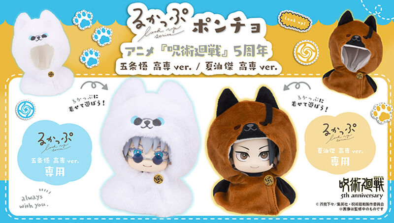 「るかっぷ」シリーズに着せ替えアイテムが登場! 別売の、るかっぷ 呪術廻戦 五条悟 高専ver. と、るかっぷ 呪術廻戦 夏油傑 高専ver. に着せて遊べるポンチョです。 「るかっぷ」は「look up(見上げる)」を元にした造語で、 あなたを見上げて見つめているような、可愛い仕草が特徴の人気フィギュアシリーズです。 「見上げ&おすわりポーズ」で、デスクの上などに飾ったとき、通常のフィギュアと比べて目が合いやすくなっています。 【セット内容】 るかっぷ用ポンチョ…1【商品素材】 ポリエステル 【対象年齢】 15才以上 【商品サイズ】 ・五条悟 用:全高約120mm ・夏油傑 用:全高約120mm 【ご注文受付数】 お一人様3個まで