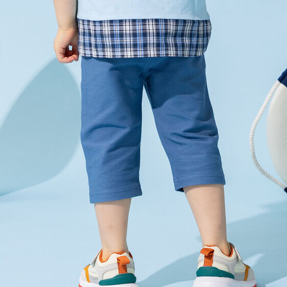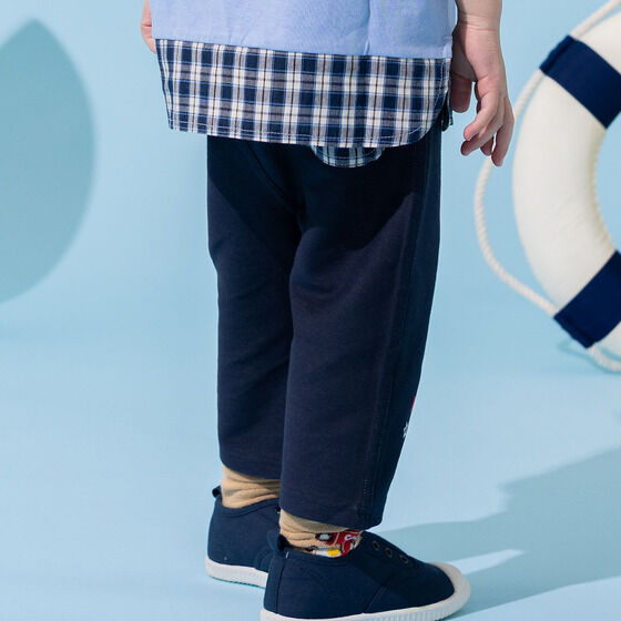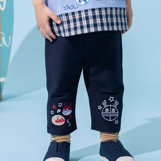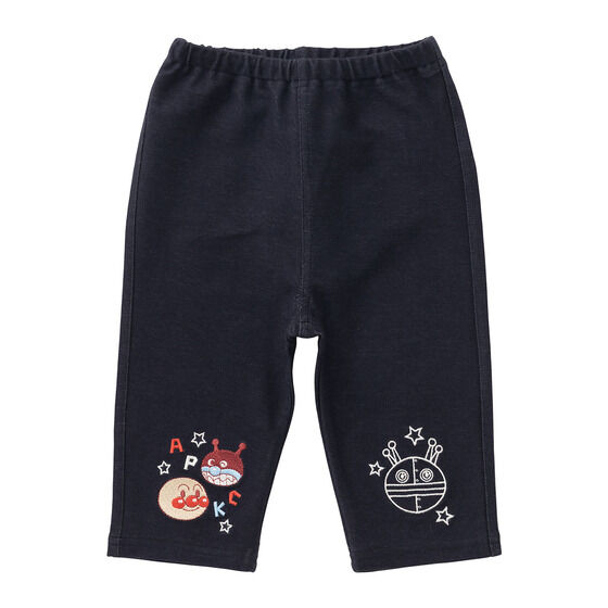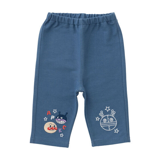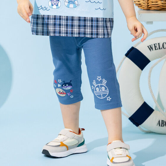 どんなコーディネートにも合わせやすい6分丈のデニムニットレギンスです。 右裾にはアンパンマンとばいきんまん、左裾にはだだんだんのお顔が刺繍されています。 後のポケットはチェック柄になっていておしゃれ! 膝が隠れる丈感なので遊び回るお子様でも安心して着用いただけます。