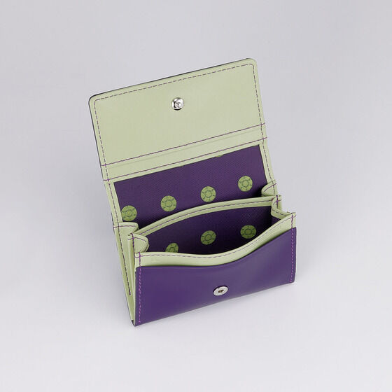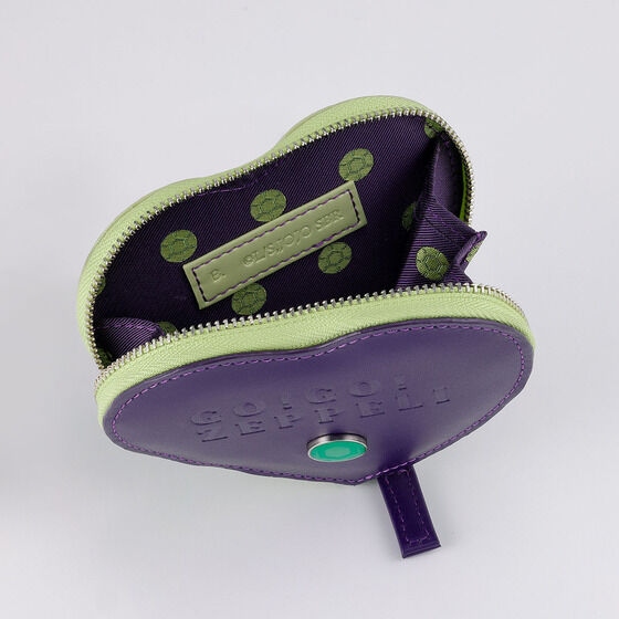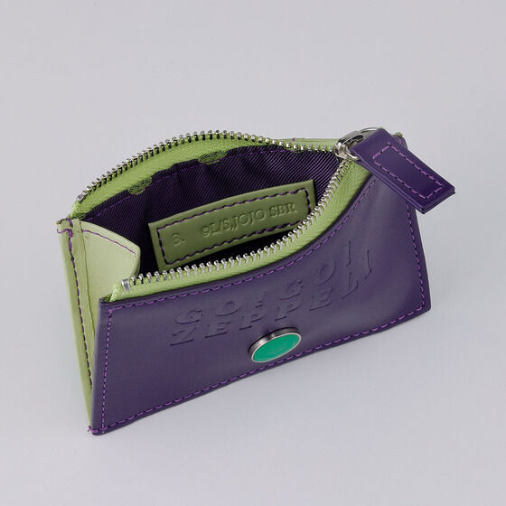 ジャイロモデルは落ち着いたパープルカラーで展開。 紫色の本革(牛革)と明るい黄緑色の合皮を組み合わせたアイテムです。 全モデル、表面に「GO!GO!ZEPPELI」の文字を型押しし、 さらに鉄球をモチーフとしたメタルエンブレムを配置いたしました。 裏地にも鉄球デザインを採用し、ジャイロらしいカラーリングでまとめました。