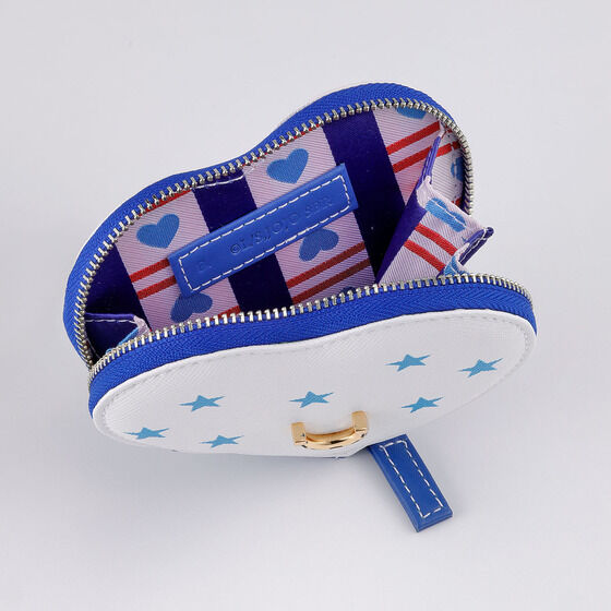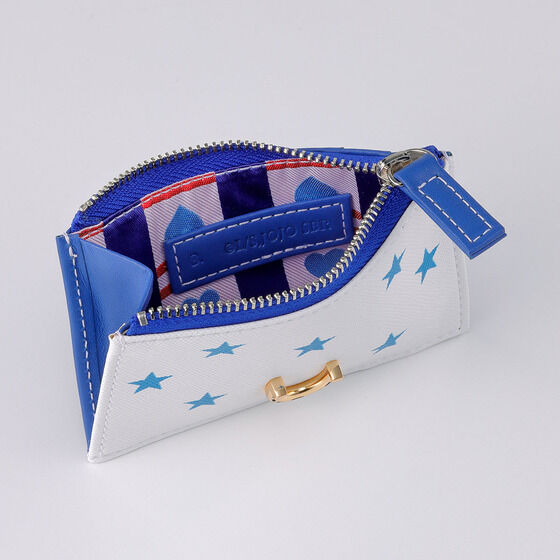 ジョニィモデルは爽やかなホワイトカラーで展開。 星マークをプリントした合皮と青色の本革(牛革)を組み合わせたアイテムです。 全モデル、アクセントとして蹄鉄のメタルエンブレムがあしらわれています。 裏地にもジョニィの意匠を取り入れ、青いハートをデザイン。 ネイビーのラインの光沢が美しい、高級感溢れる内装に仕上げました。