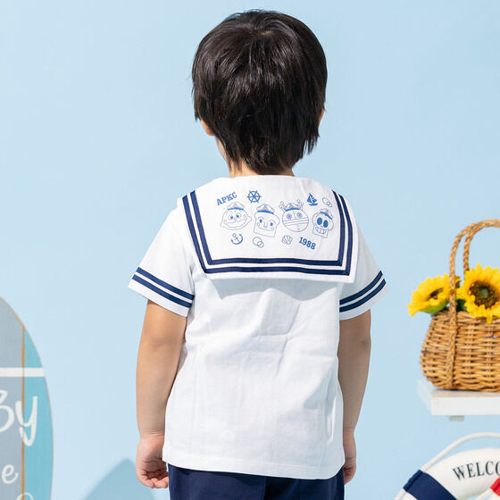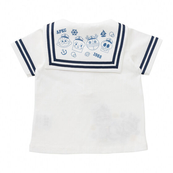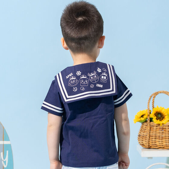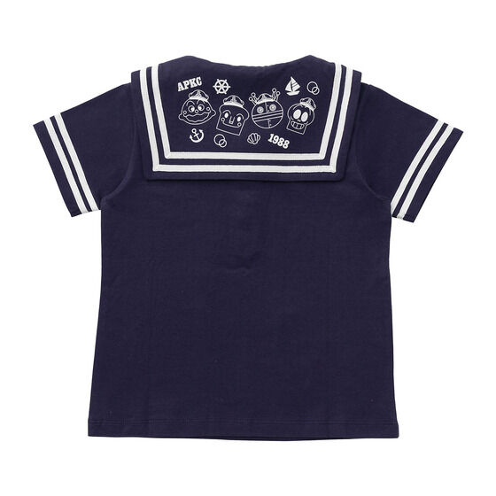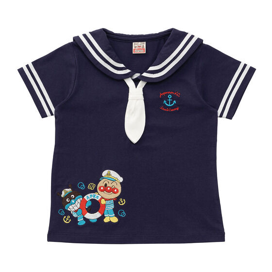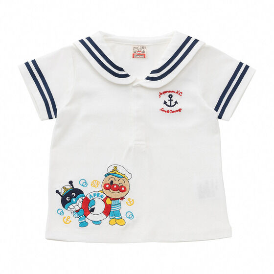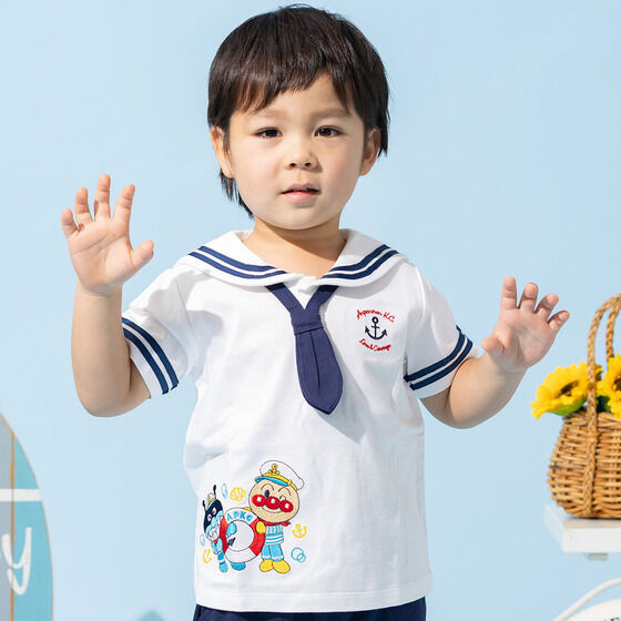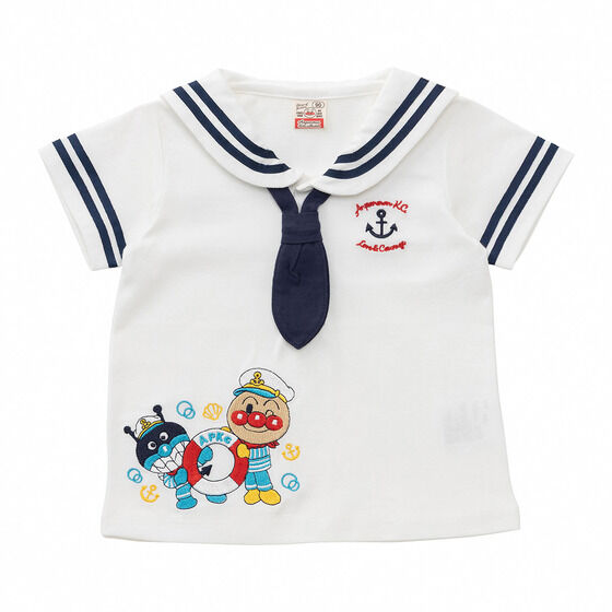 セーラーカラーとネッカチーフがおしゃれなマリンスタイルTシャツ。 フロントのアンパンマンとばいきんまんは刺繍で表現されており、バックのセーラー襟部分のデザインはプリントで表現されています。 別売りのマリンデザインのパンツとのセットアップもおすすめです。 ※ネッカチーフは取り外し可能です。