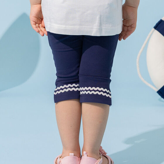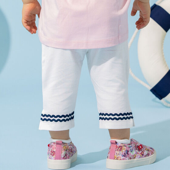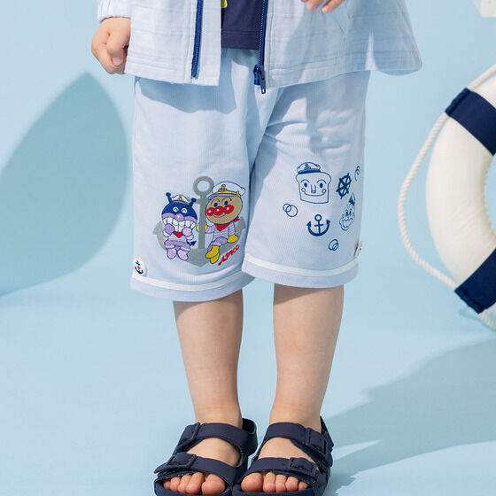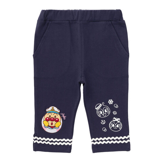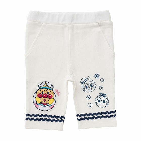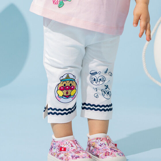 マリン帽子を被ったアンパンマン、ドキンちゃん、コキンちゃんのデザインがかわいいレギンスパンツ。 アンパンマンは刺繍、ドキンちゃんとコキンちゃんはプリントで表現されています。 ウエストはゴム仕様で、裾にはスリットが入っており、脱ぎ履きしやすいのもポイント。