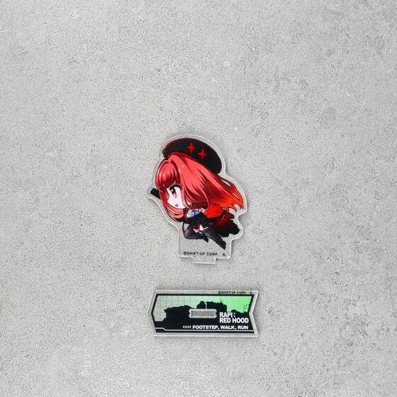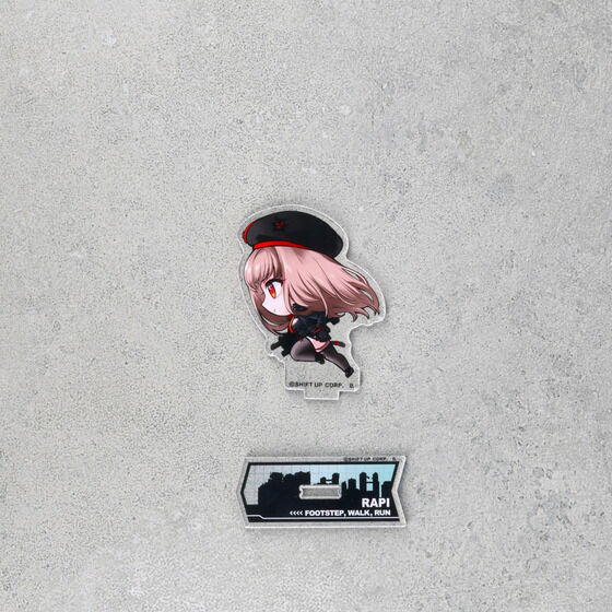 受け継いだものを背負い、前に進むことにしたラピ。新たな旅立ちの前に、彼女は大切な仲間たちに自らの過去を語るのだった。 勝利の女神:NIKKE ストーリーイベント「FOOTSTEP, WALK, RUN」をイメージした走る姿のオリジナルデフォルメイラスト商品! イベントストーリーをイメージして、さまざまな時代を駆け抜けたニケたちの姿をデフォルメイラストで表現! 集めて並べて飾って楽しいアクリルスタンドです。 ■サイズ: 共通台座(レッドフード以外) 約W86mm×H36mm ラピレッドフード:約W105mm×H130mm アニス:約W94mm ×H130mm ネオン:約W84mm ×H129mm ウンファ:約W120mm ×132mm ベスティー:約W86mm ×H120mm エマ:約W88mm ×H129mm ラピ:約W102mm×H127mm レッドフード:約W145mm× H147mm ラピ量産型:約W99mm ×H118mm ラピ少女時代:約7W4mm ×H109mm ■素材:アクリル ■生産エリア:日本 ※アクリル製品は、製造・梱包・輸送過程において、細かい気泡跡や傷が生じることがございます。 あらかじめご了承ください。 (C)SHIFT UP CORP. |