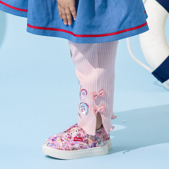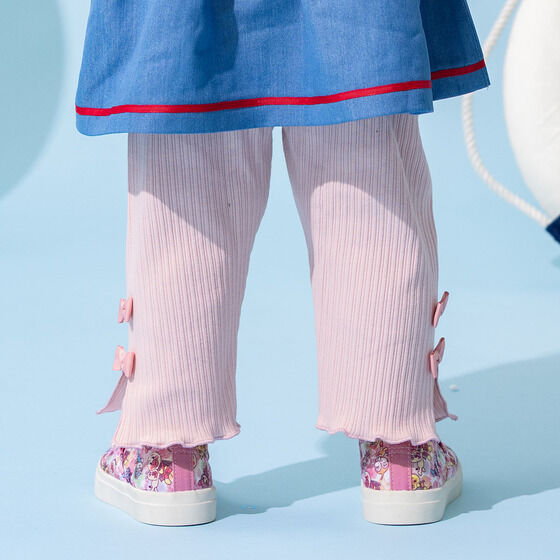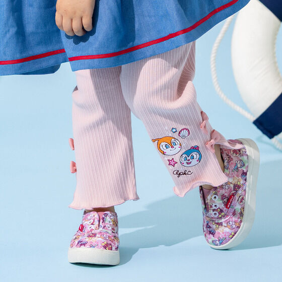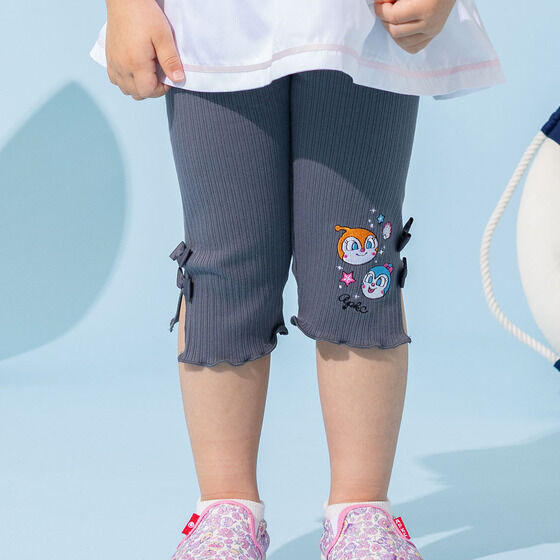 どんなコーディネートにも合わせやすいレギンスです。 左裾にはドキンちゃん・コキンちゃんのお顔が刺繍されています。 左右のリボンと裾のメロウがポイント! 膝が隠れる丈感なので遊び回るお子様でも安心して着用いただけます。 シンプルなデザインで1枚あると重宝するアイテムです。