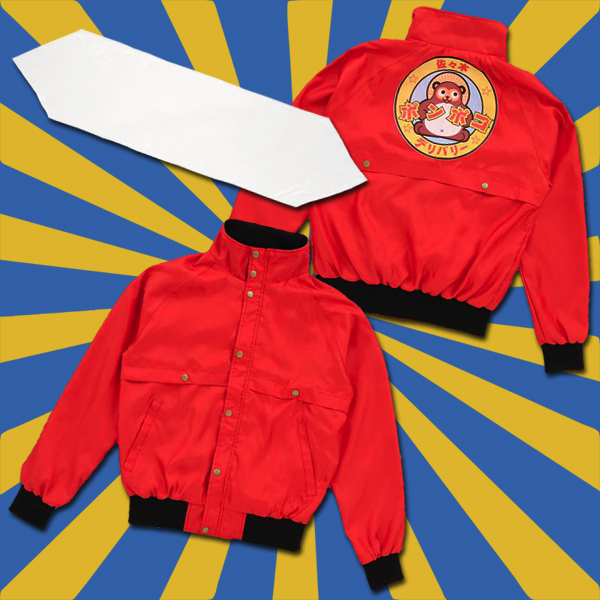 主人公「赤木信夫」の勤めるポンポコデリバリーのジャンパーやストール、ポロシャツなど、